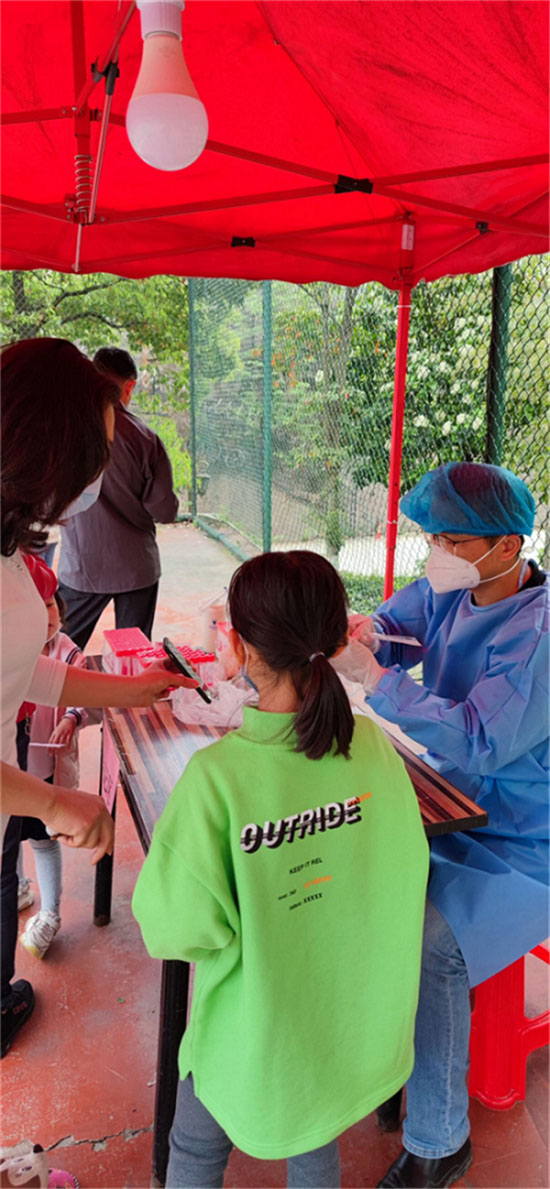 4月5日,岳麓区一支部会员、顽型家居总经理张晓忱带领公司5位员工,到观沙岭桔洲新苑社区做核酸检测志愿者。